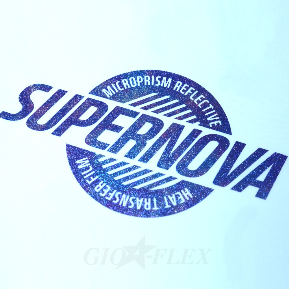 GIO-LUMISTAR is a heat transfer film made up of TPU material using microprism retro reflectivity. The finish of the top is flawless and features sparkling and reflective effect when comes in contact with light source. Furthermore, Thermoplastic Polyurethane shortly known as TPU is harmless to human beings and has vantage of outstanding durability and flexibility among PU materials.