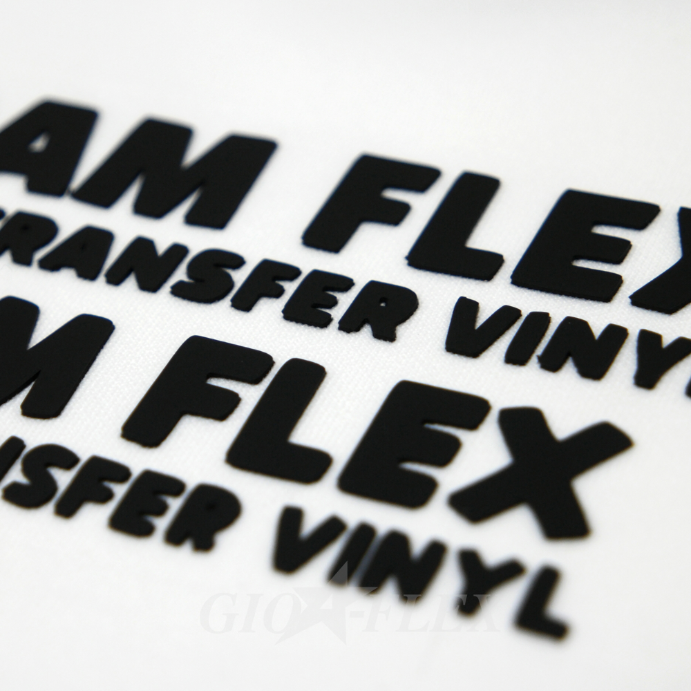 GIO-FLEX FOAM is a special polyurethane CAD CUT heat transfer vinyl film with a unique foaming effect that adds a raised, 3D texture to your designs. Perfect for fashion apparel, team uniforms, and creative textile applications, this film gives a bold and premium look that stands out. With reliable adhesion and long-lasting performance, GIO-FLEX FOAM is an excellent choice for designers who want to add dimension and style to their work.