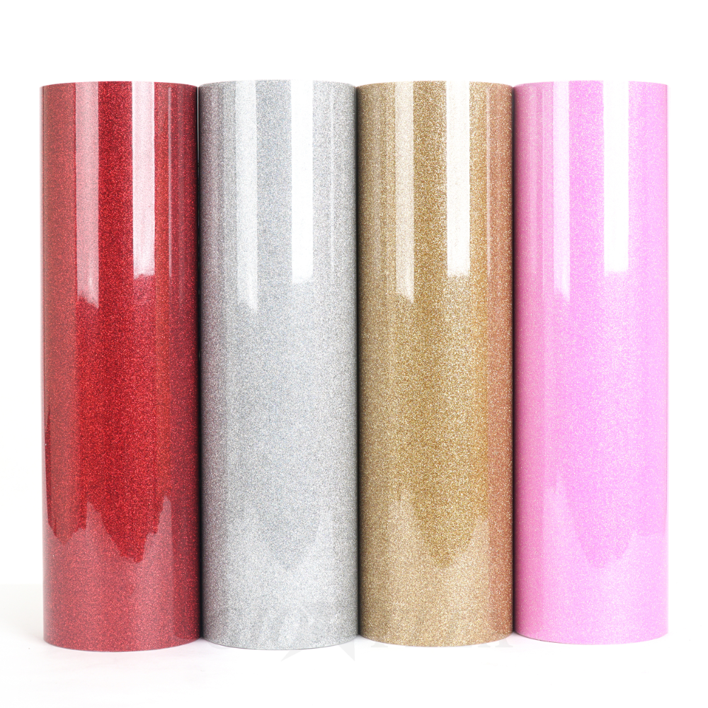 GIO-GLITTER is a high-quality polyurethane CAD CUT heat transfer vinyl film with a sparkling glitter surface that adds shine and brilliance to any design. Perfect for fashion apparel, stage costumes, party wear, and decorative applications, this film gives a dazzling effect that makes your creations stand out. With its excellent durability and smooth cutting performance, GIO-GLITTER ensures eye-catching designs that last wash after wash.