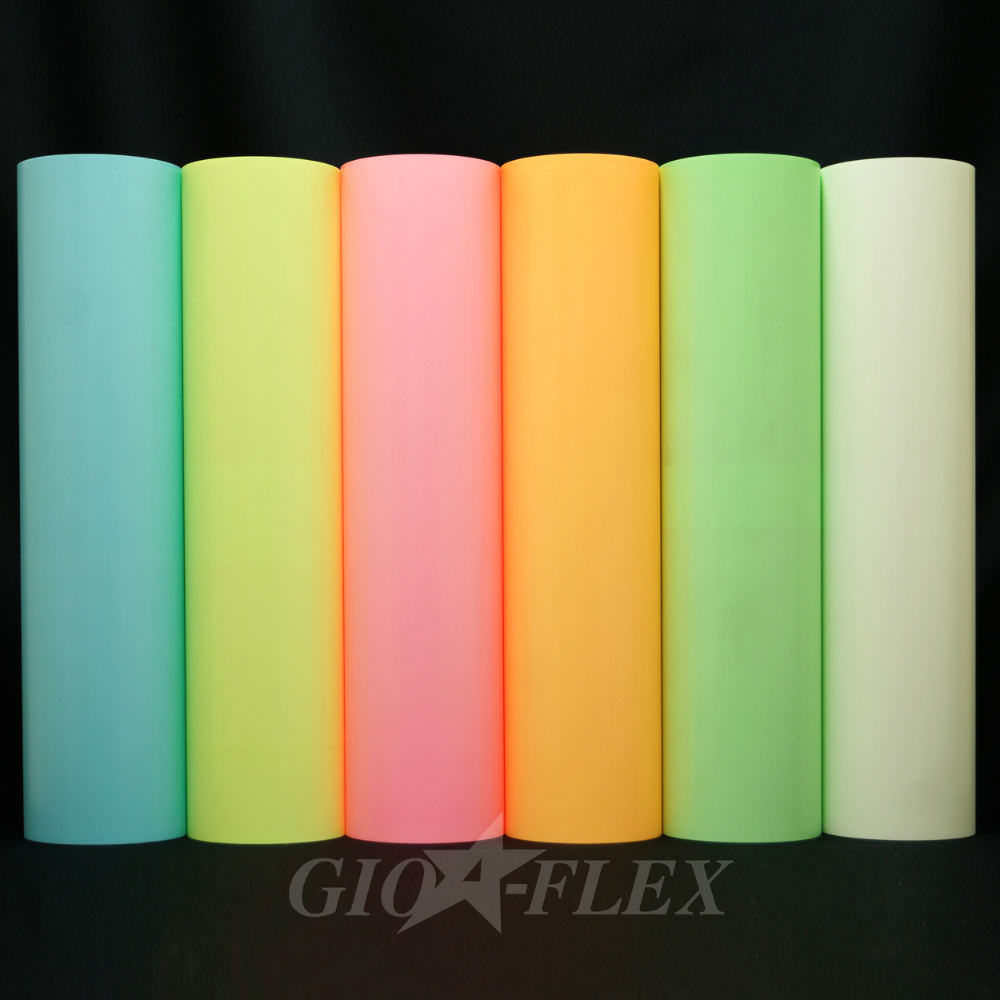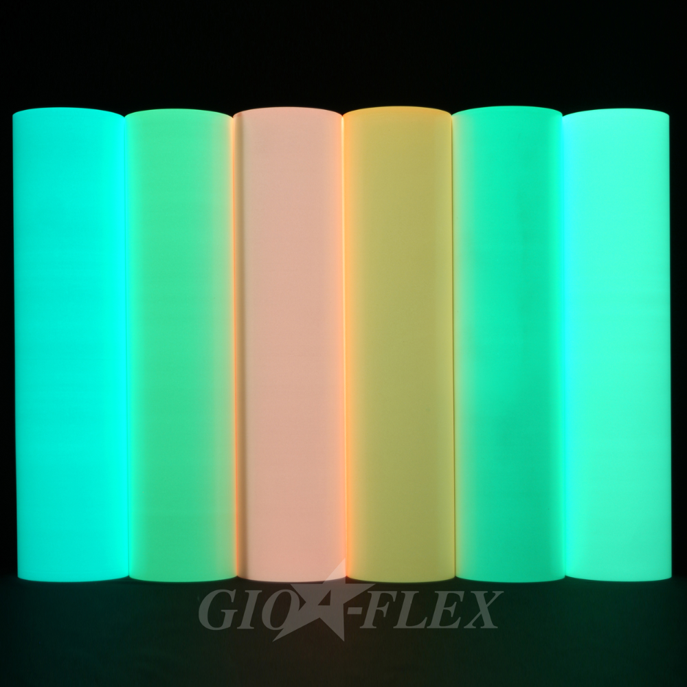 GIO-GLOW-DARK is a unique polyurethane CAD CUT heat transfer vinyl film that glows brightly in the dark after being exposed to light. Perfect for creative designs, safety wear, sports uniforms, kids’ apparel, and promotional items, this film brings designs to life even in low-light environments. With excellent durability and smooth cutting performance, GIO-GLOW-DARK combines fun, function, and reliability.